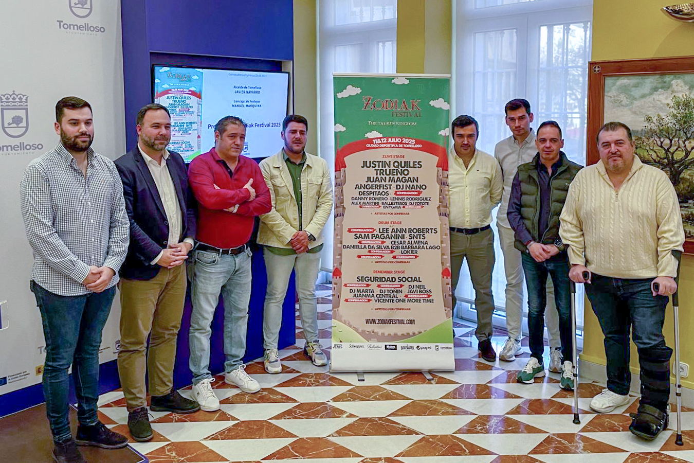 Este viernes se ha presentado en la sala Francisco Carretero del Ayuntamiento el Zodiak Festival 2025, la tercera edición de este evento musical que según se estima, reunirá a más de 10.000 personas en Tomelloso. Se celebrará los días 11 y 12 de julio en la Ciudad Deportiva. Han asistido a este presentación el alcalde de la ciudad, Javier Navarro, el concejal de Festejos, Manuel Marquina y varios representantes de la organización como José Carlos López, Manuel Caro, Adrián Ruiz, Antonio Donoso, Adrián Lozano y Javier Caro.