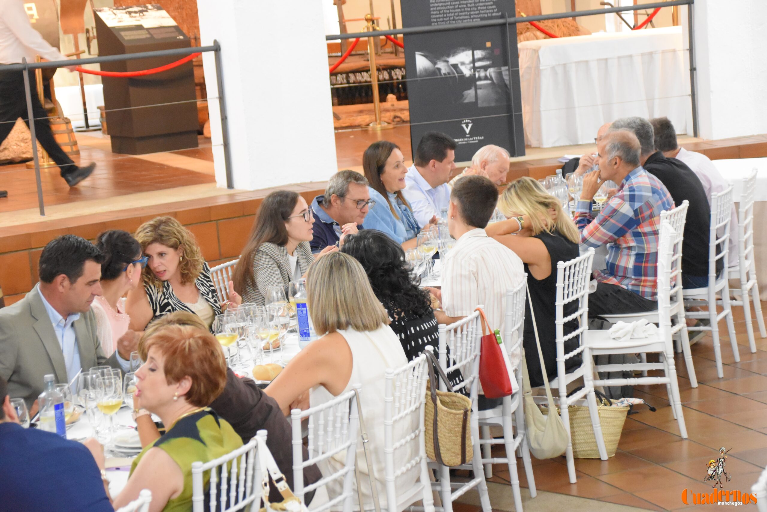 Hoy, 11 de septiembre, coincidiendo con la campaña de vendimia, la Cooperativa Bodega y Almazara Virgen de las Viñas ha celebrado su comida anual junto a periodistas, escritores y artistas. El encuentro tuvo lugar en el museo-lagar de la entidad, donde se degustó un menú típico manchego —gachas, migas, chorizo, morcilla, tocino y lomo de cerdo—, acompañado de melón, sandía y los vinos de la cooperativa.