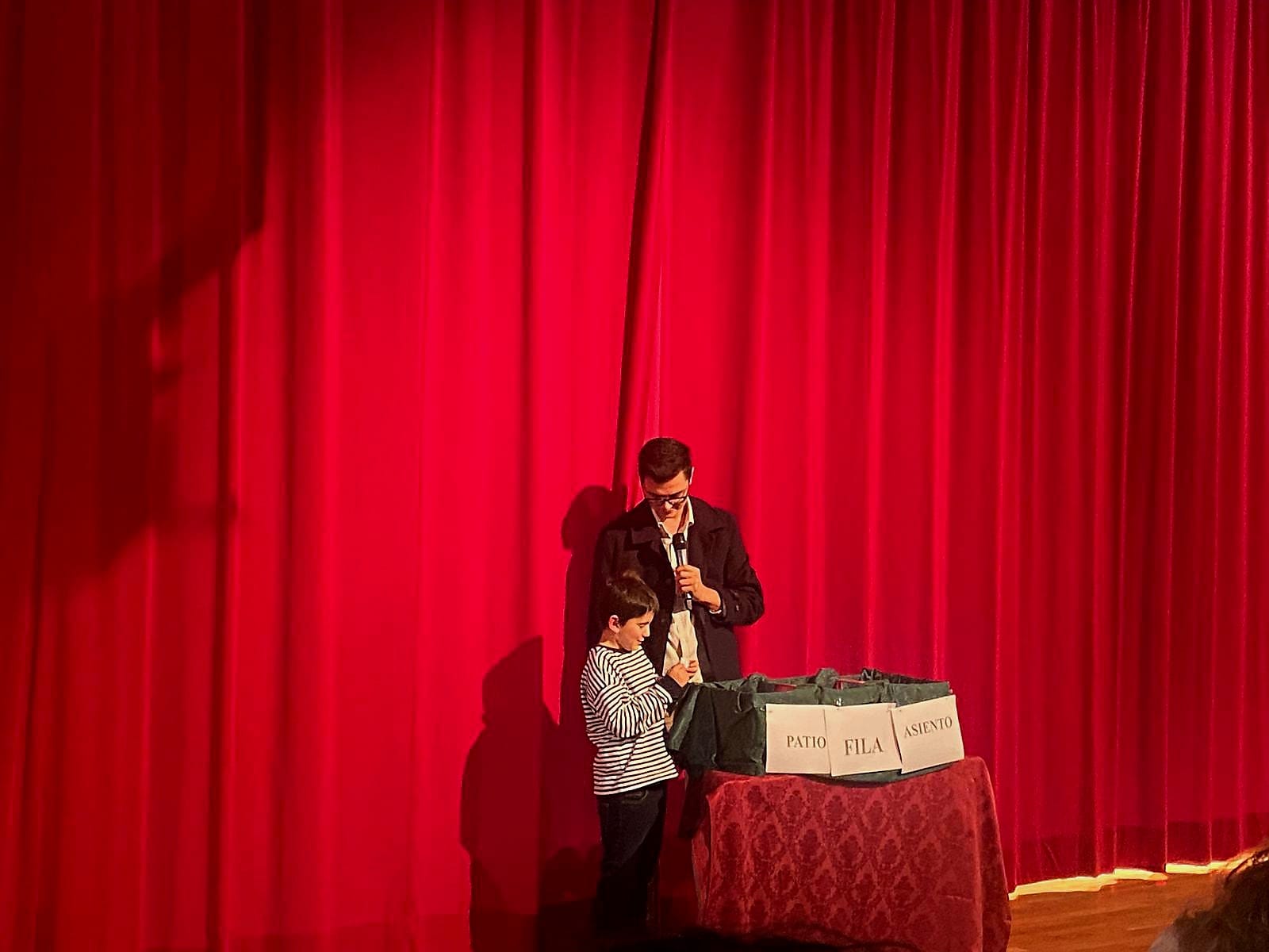 En el descanso entre sainetes, la Hermandad del Mayor Dolor quiso agradecer la presencia del público con el sorteo de un portal de belén artesanal realizado por el maestro belenista local Antonio Ligero Carrasco.