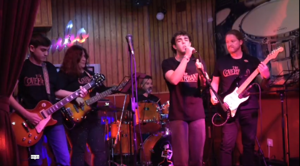 El concierto comenzó con la actuación de “The coverband” compuesto por Alonso, Pablo, Mari Ángeles, Luis Miguel y Vicente. Los alumnos interpretaron “Antiaéreo” de Arde Bogotá, “What i’ve done” de Linkin Park, “Hysteria” de Muse, “Dream on” de Aerosmith y “Zombie” de The Cramberries.
