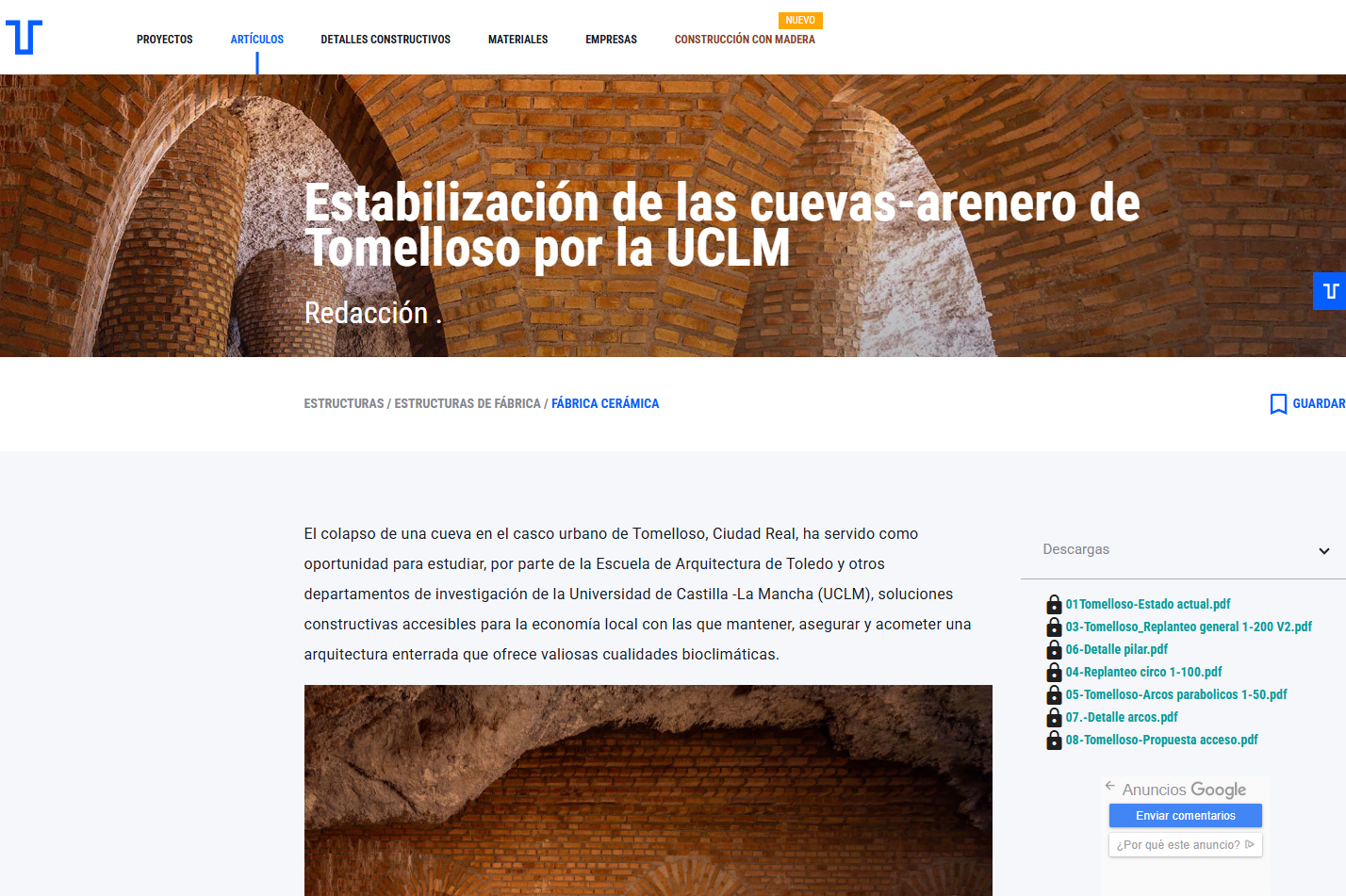 La revista Tectónica se ha hecho eco del proceso de estabilización que se ha llevado en las cuevas-arenero de Tomelloso por parte de la UCLM y el Ayuntamiento de la ciudad.