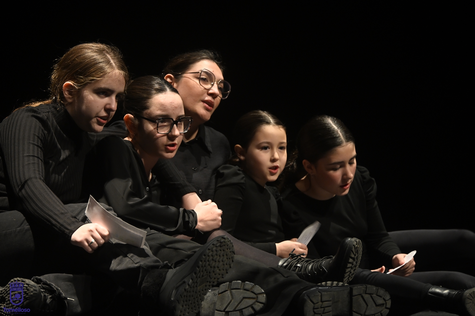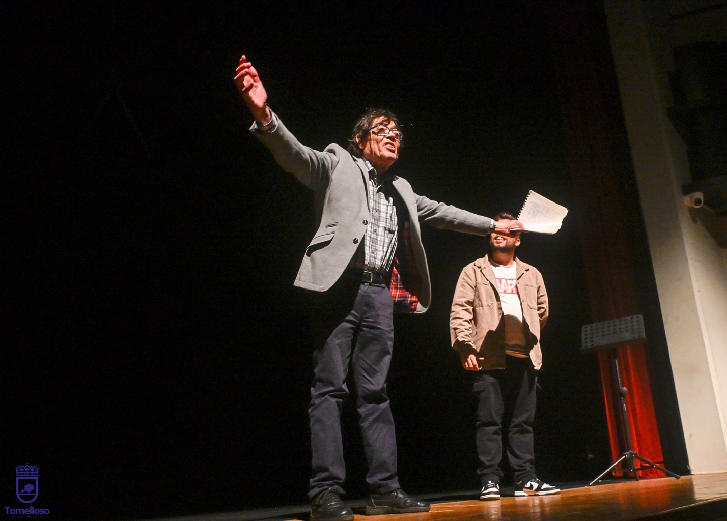 Tras las intervenciones institucionales, el público disfrutó de una velada completa en la que el teatro, la música y la danza llenaron el escenario. El espectáculo comenzó con una coreografía de danza y música a cargo de Abril Serna y Carla Sánchez de Essential Pilates, y continuó con breves representaciones y lecturas teatrales: fragmentos de García Pavón, interpretados por José Luis y Felipe del nuevo grupo de teatro Acto Prana; escenas de La casa de Bernarda Alba, de Federico García Lorca, representadas por las jóvenes del taller de teatro del Centro Joven; pasajes de Hamlet, de William Shakespeare, a cargo de Carmen López; y una lectura de El Quijote, centrada en un episodio ambientado en Tomelloso, a carga del propio Julián Espinosa, José Márquez y José María Madrigal .