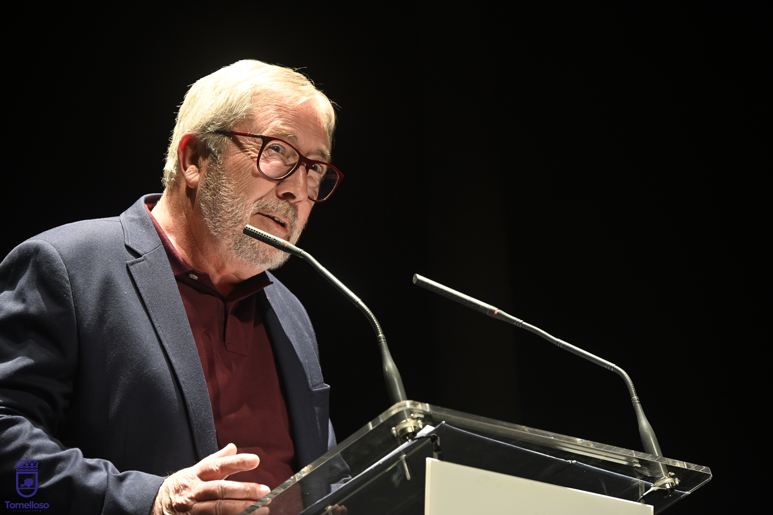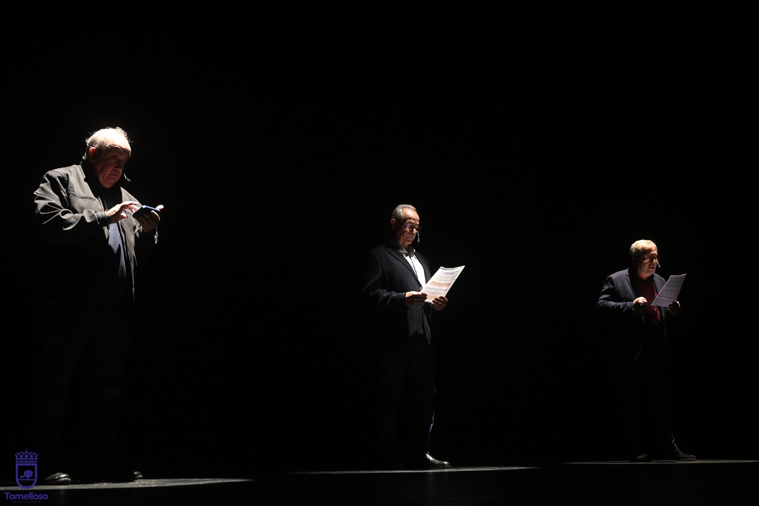 El alcalde de Tomelloso, Javier Navarro, fue el encargado de entregar el reconocimiento acompañado por Pilar López, compañera del homenajeado. En la presentación intervinieron también la concejala de Cultura, Inés Losa, y la concejala de Juventud, Carmen López, muy vinculada a las artes escénicas, que dio lectura al manifiesto del Día Mundial del Teatro, firmado por el actor y cineasta Willem Dafoe.