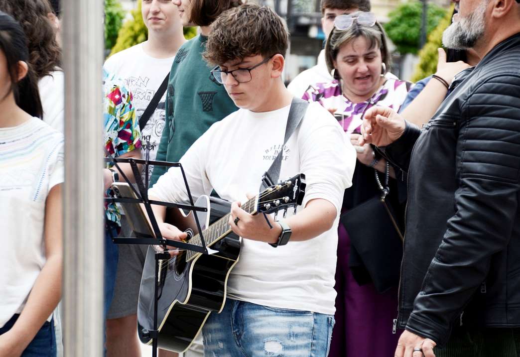 Tras una foto de grupo, en la plaza de España se ha izado la bandera de Europa y ha actuado una formación musical compuesta por alumnos de este centro.