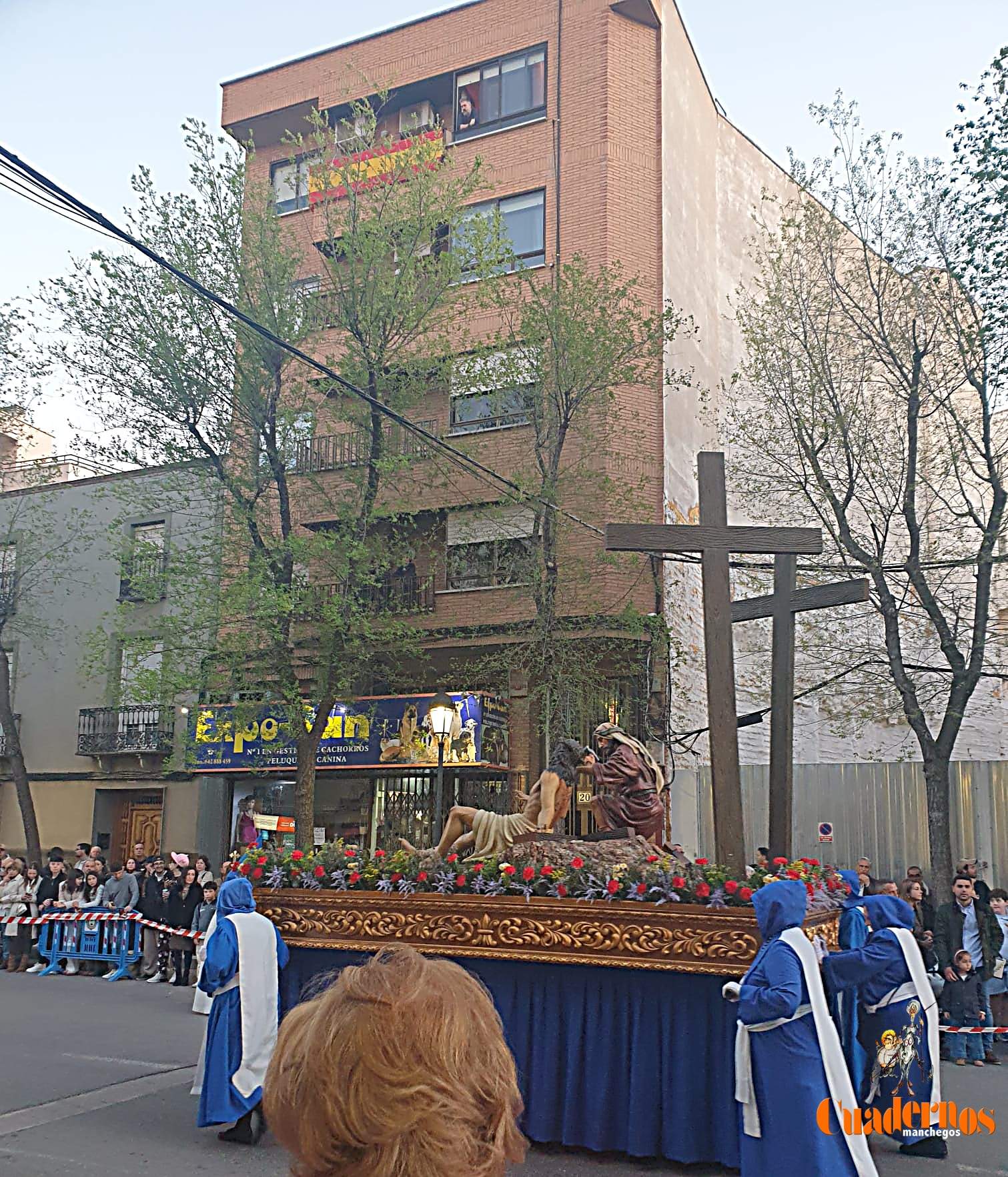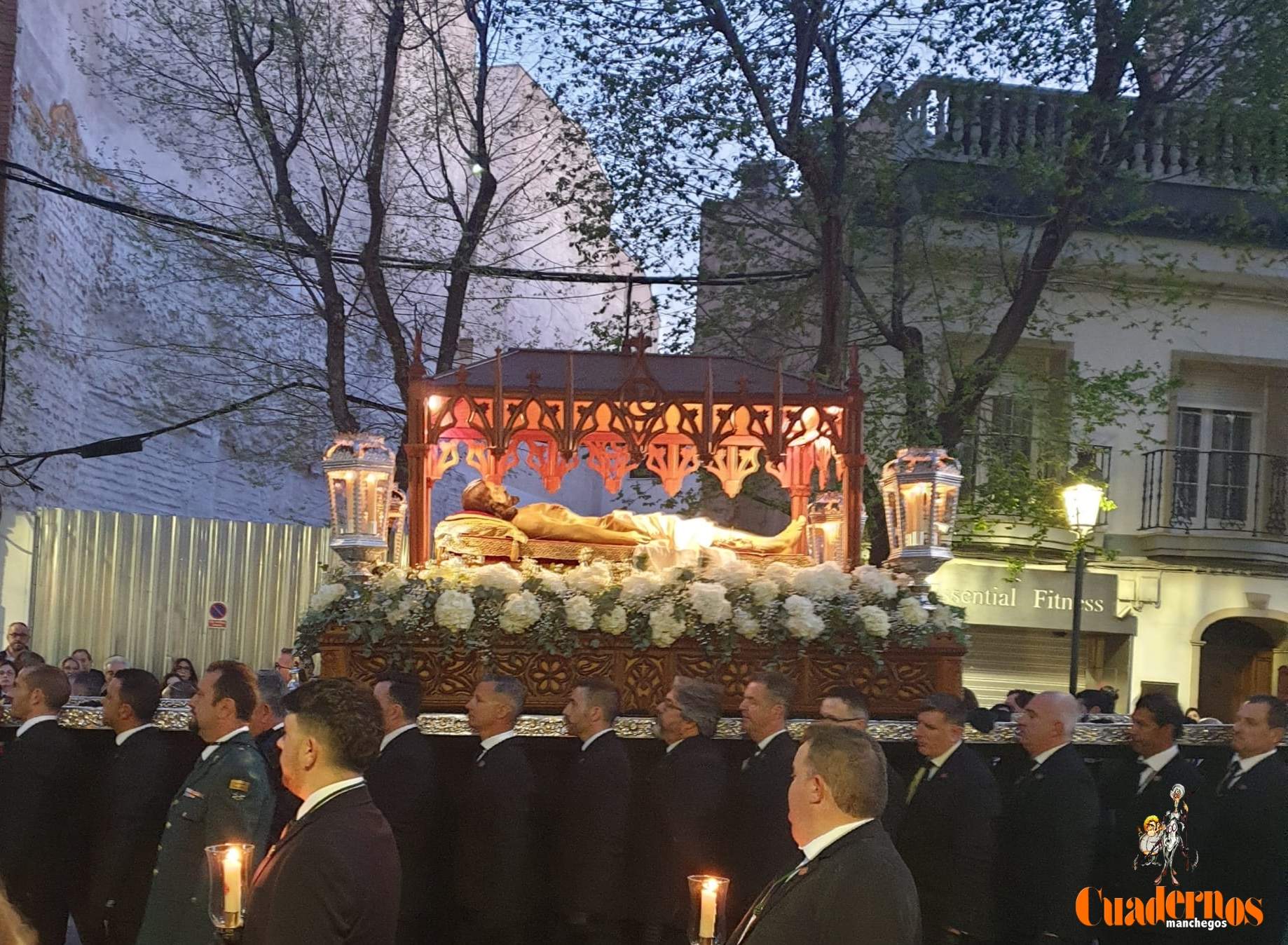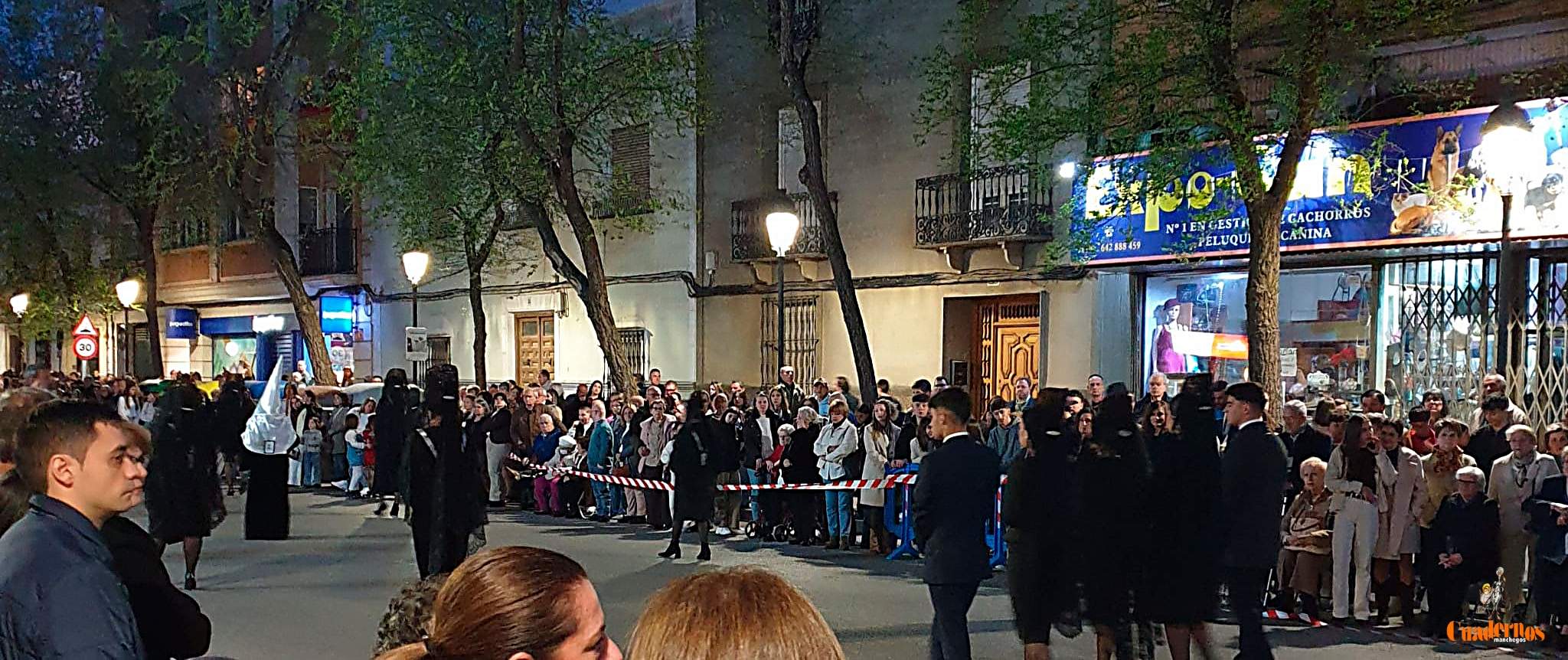 Con el anochecer ya asentado sobre la ciudad, el cortejo fue abriéndose paso desde la Plaza de España para continuar por Doña Crisanta, Pintor Francisco Carretero, Independencia, Glorieta María Cristina, Lepanto y Don Víctor Peñasco, antes de regresar de nuevo al corazón del municipio. A lo largo de todo el itinerario, el público siguió con atención el avance de una procesión que ocupa un lugar destacado dentro del calendario cofrade tomellosero.