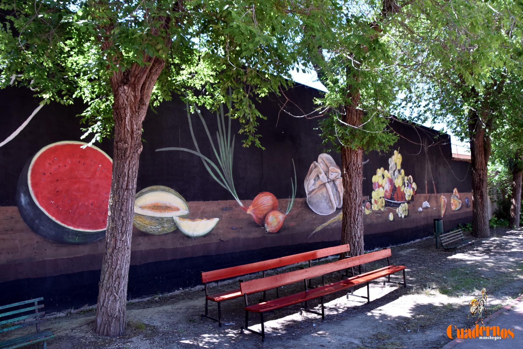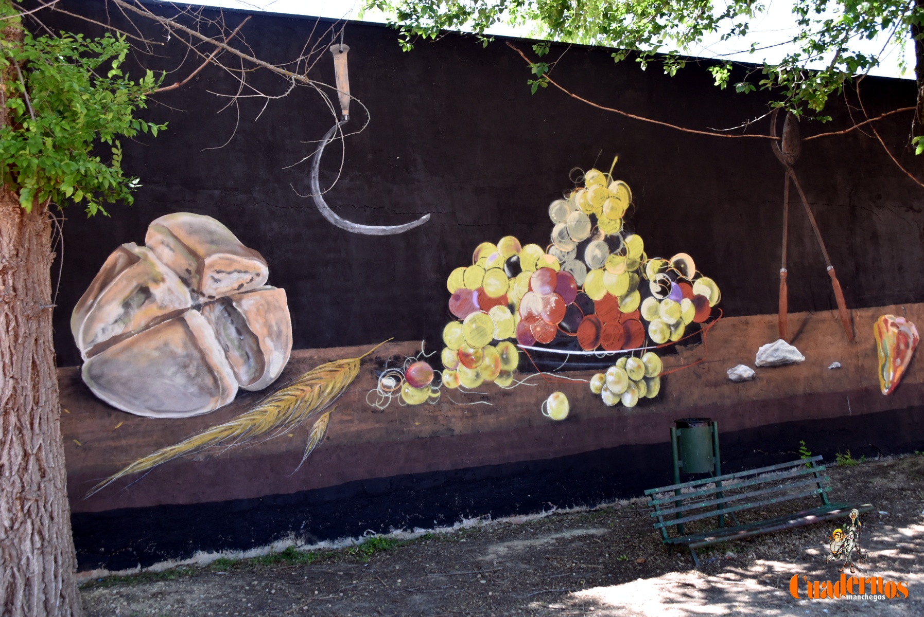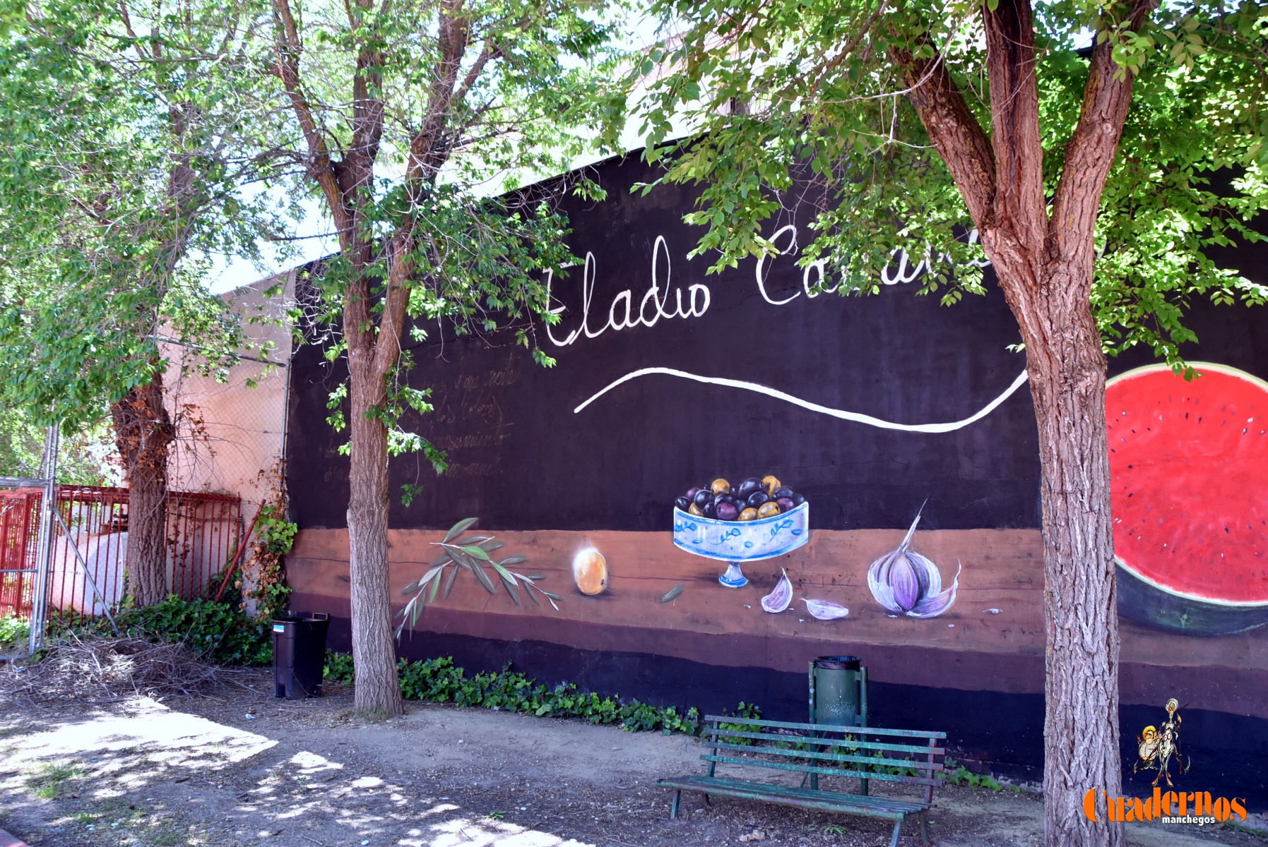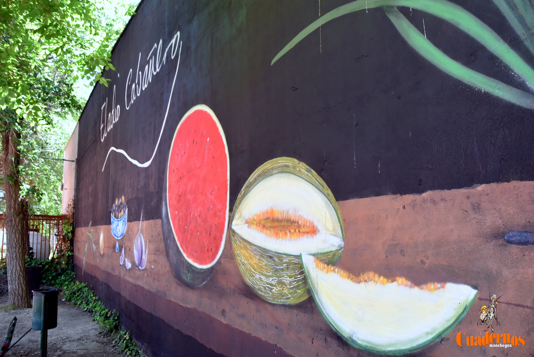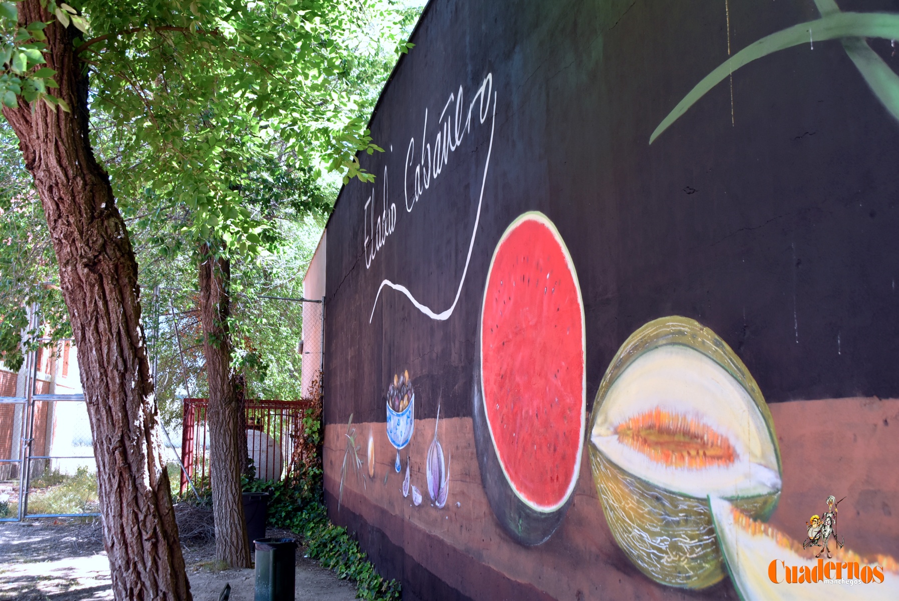 Desde hoy 20 de mayo en una de las paredes del patio del IES Eladio Cabañero se puede disfrutar de un mural de grandes dimesiones (26×4) realizado por el artista local Roberto Carretero ‘Gobi’, antiguo alumno del propio centro educativo, en el que tras aproximadamente un mes de trabajo ha plasmado un gigantesco bodegón manchego, una espectacular joya del realismo.