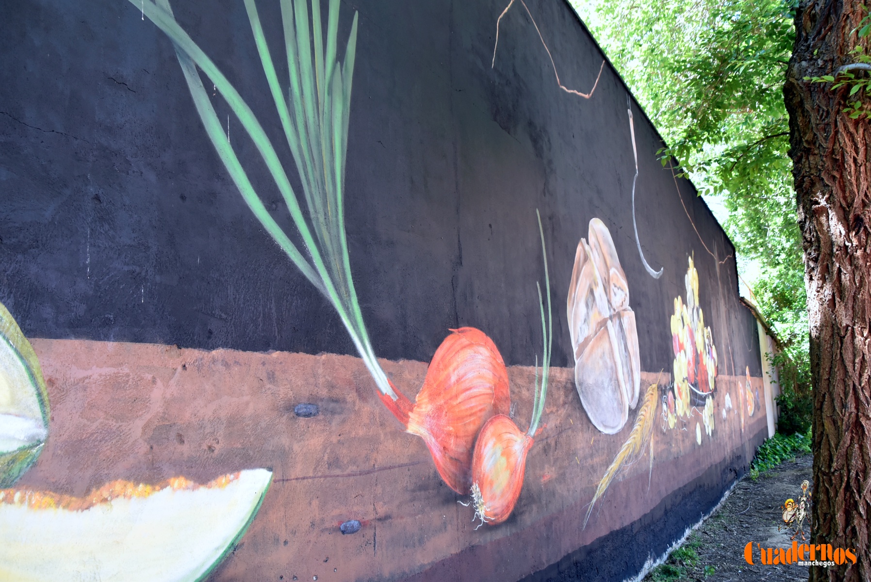 Se ampliaba el mural con alusión a Antonio López Torres en una de sus obras de bodegón con pimientos y bodegón con pan y cebolla.