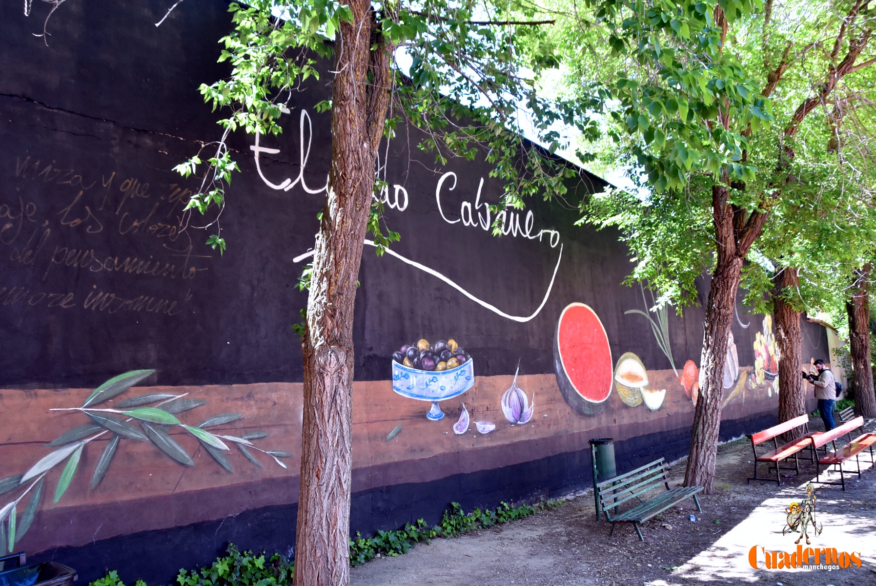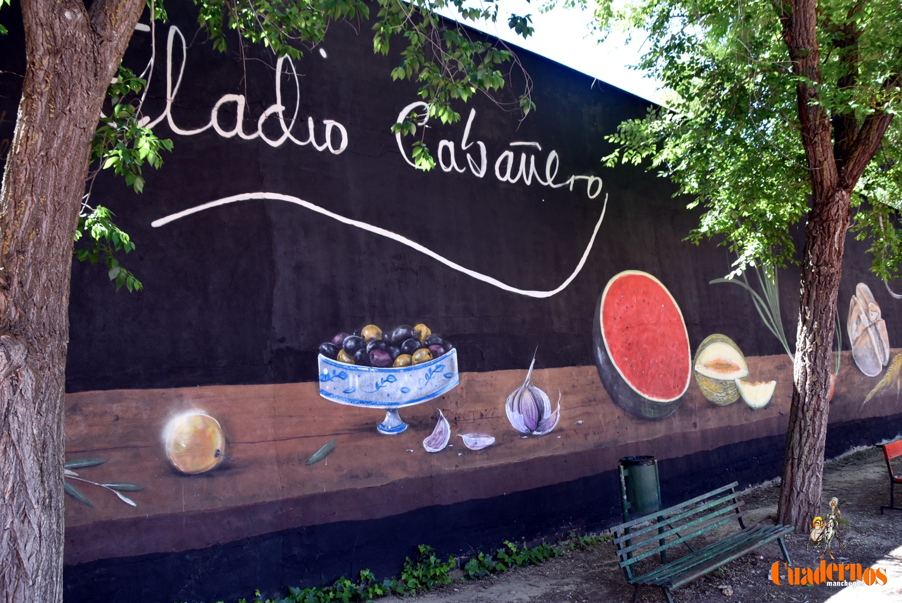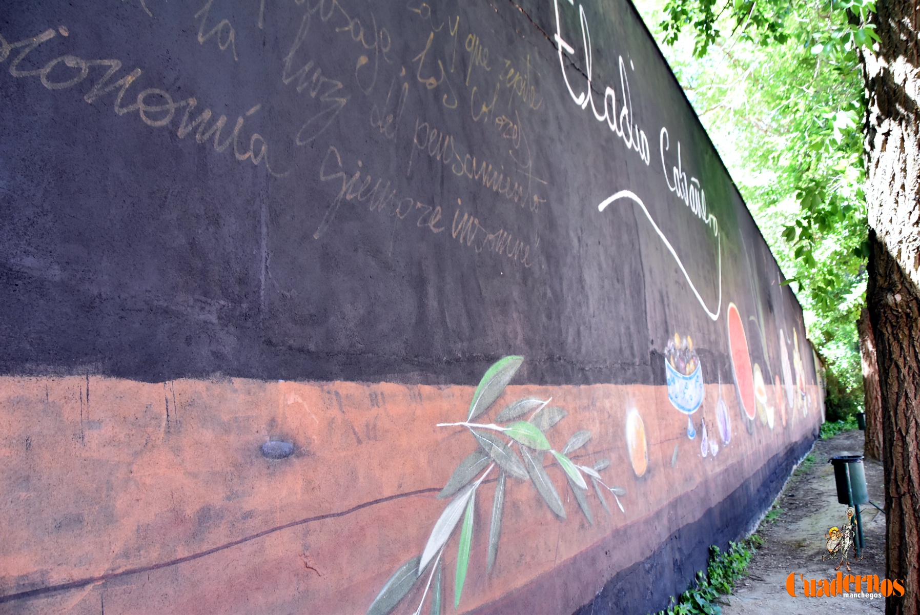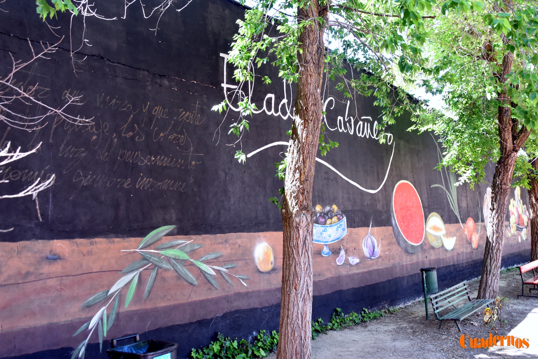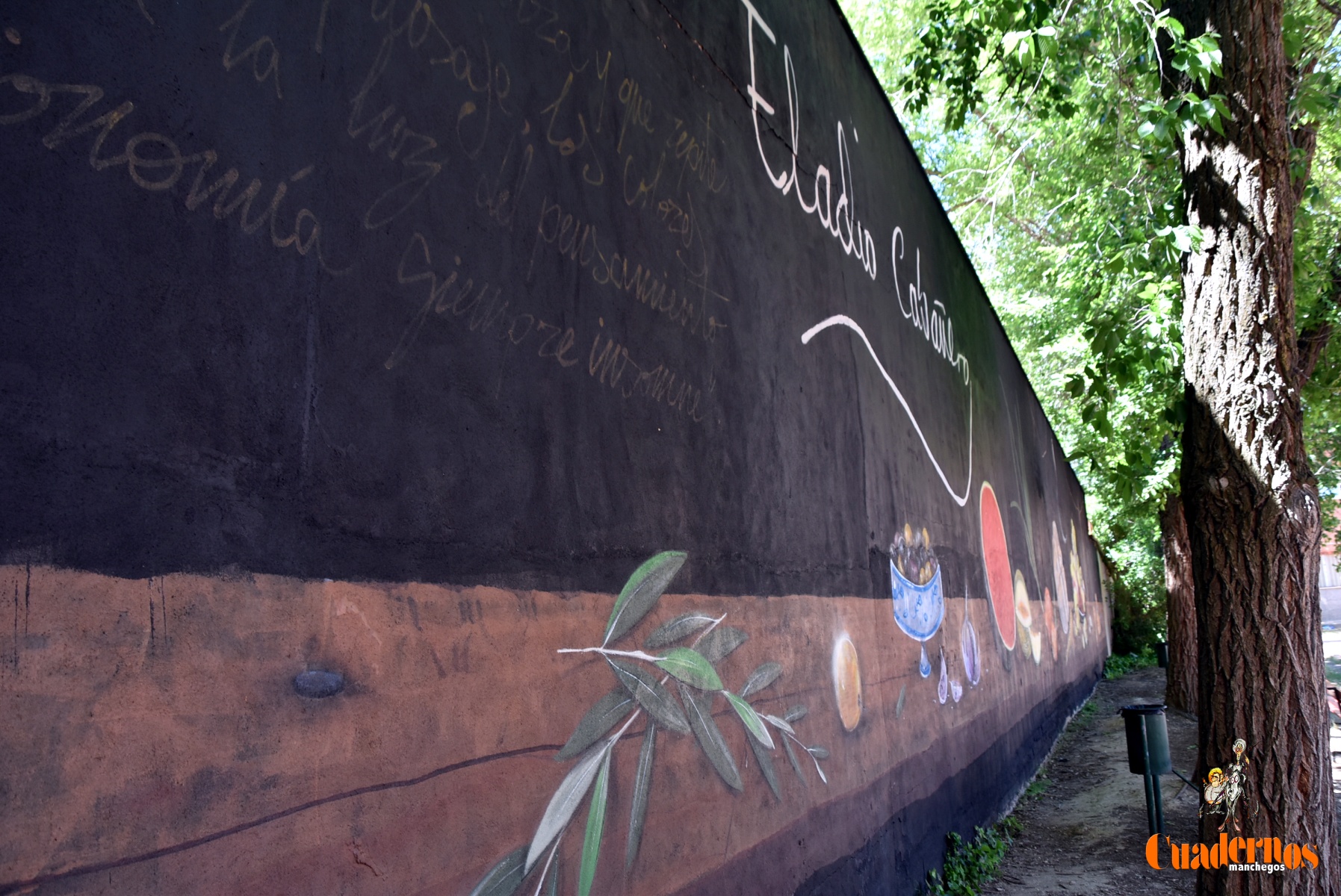 El autor Roberto Carretero ‘Gobi’, expuso el compromiso adquirido hacía dos años y que lo había podido cumplir mediante un mural de homenaje al labrador manchego, habiéndole dado un tono de envejecimiento en las letras que figuraban al principio de la obra y referidas a una frase de Eladio Cabañero.