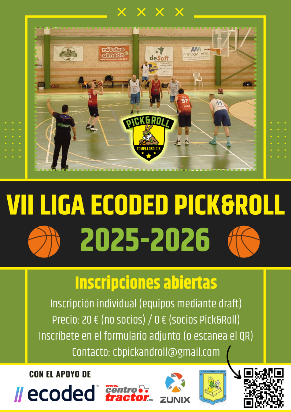 Este año contamos con el apoyo de Ecoded (patrocinador principal), junto con Centro Tractor y Zunix, que siguen apostando por el basket local.