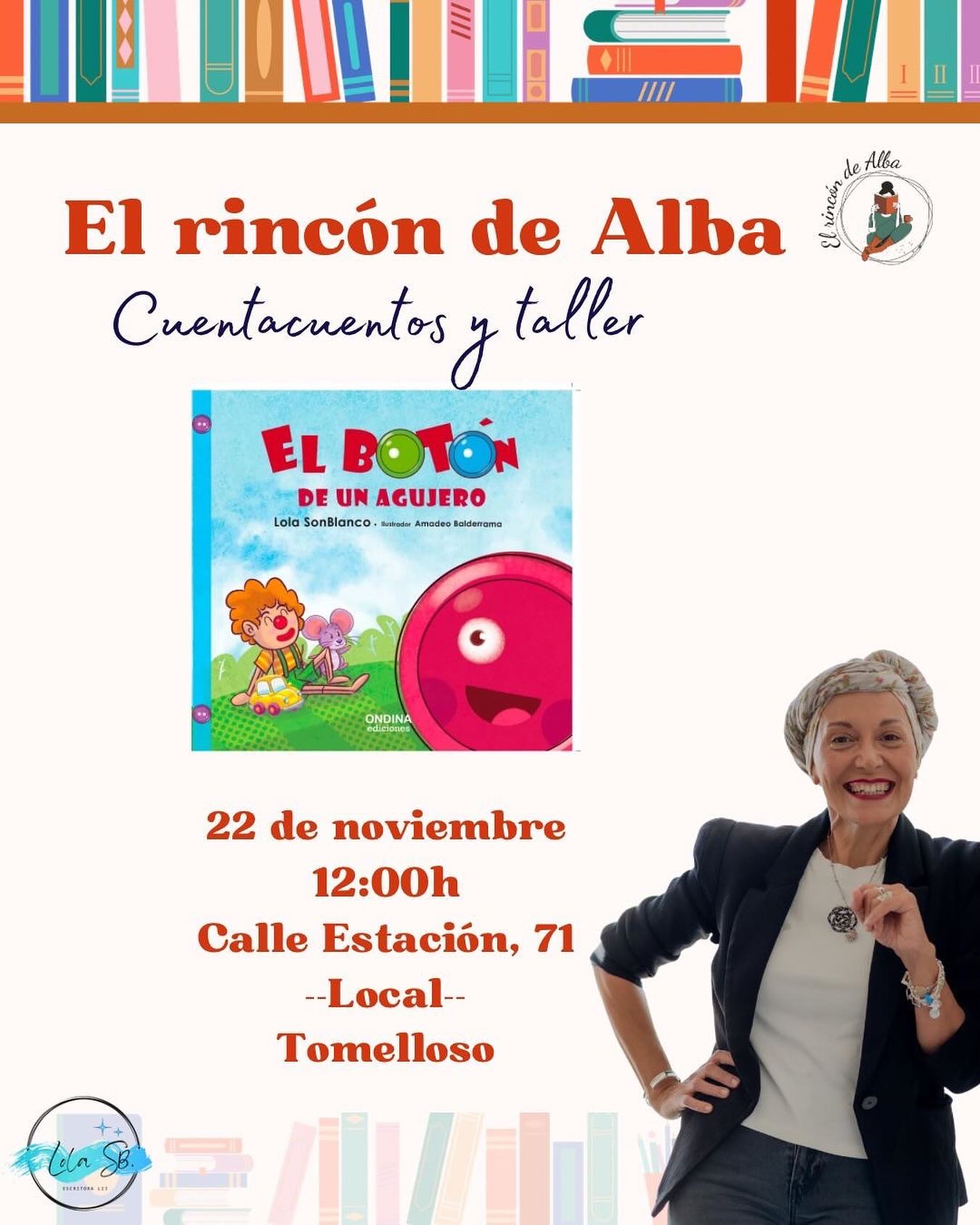 El Rincón de Alba, una librería conocida por su acogedor ambiente y su amor por los libros, recibe con entusiasmo el regreso de la autora Lola Sonblanco, quien será la encargada de encender la chispa de la imaginación de los más pequeños (y no tan pequeños) con su entrañable cuento «El botón de un agujero». Este hermoso relato, cargado de ternura y enseñanzas, promete ser una experiencia única para toda la familia.